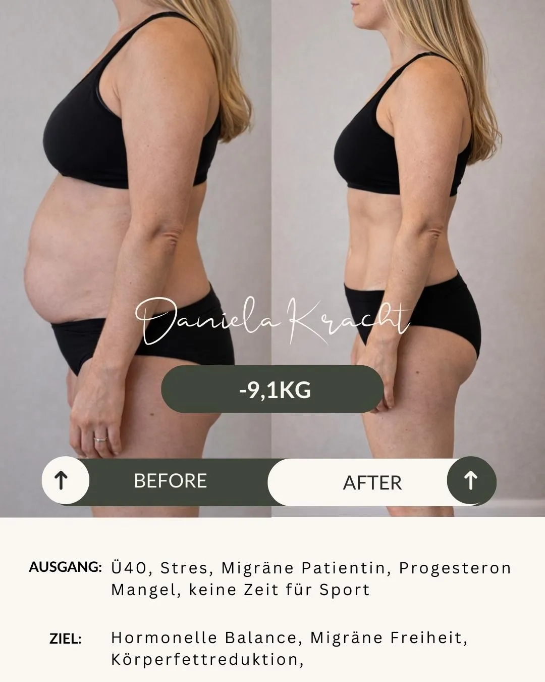 Du setzt auf eine klare hormonfreundliche Strategie und lernst, wie du Ernährung, Training & Mindset so aufeinander abstimmst, dass dein Körper wieder für dich arbeitet.